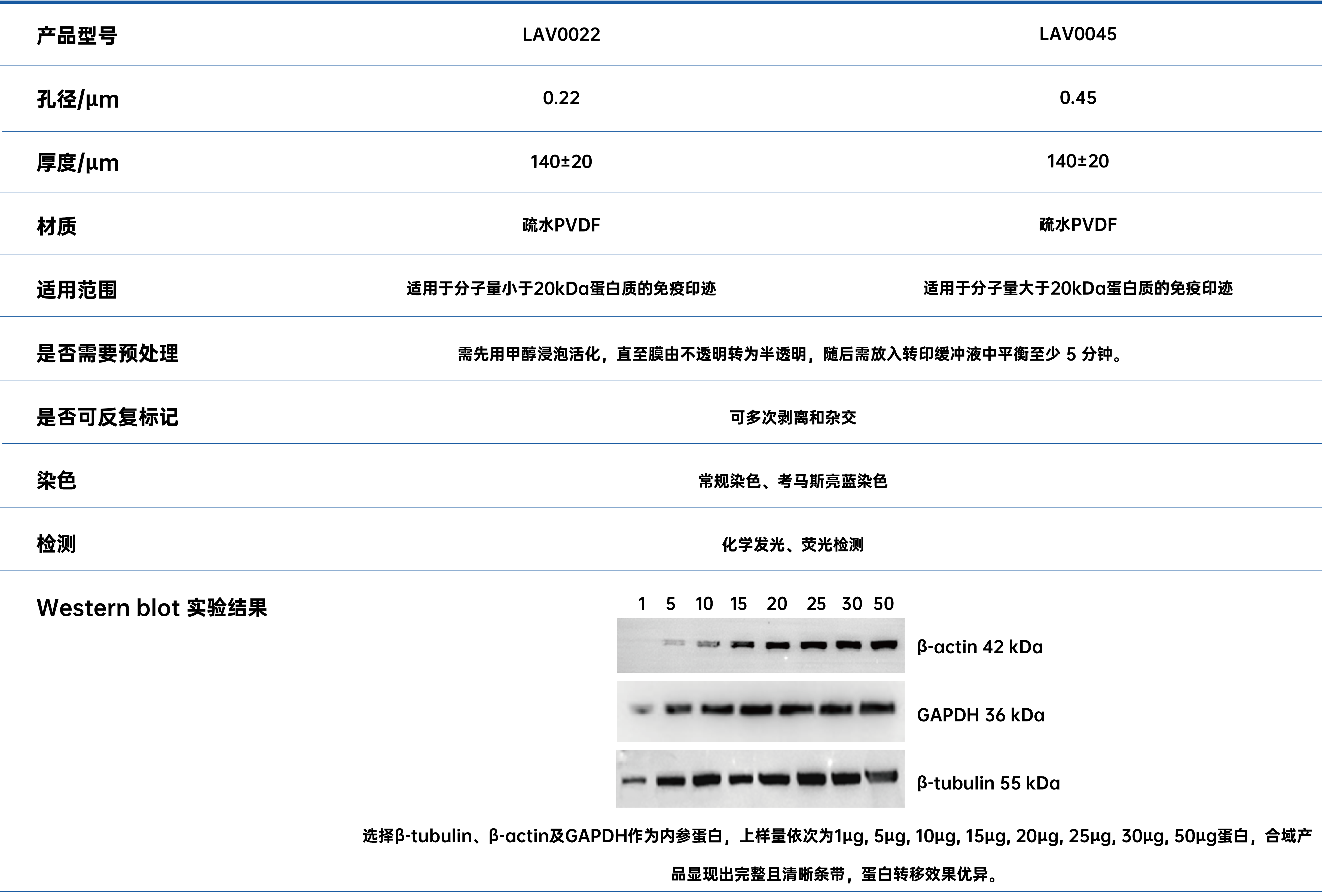 蛋白质转印在免疫印迹分析中是重要的一环,通过将蛋白质转印到滤膜表面,经抗体结合、酶标或荧光素标记,可实现检测目标蛋白的目的。合域科技的PVDF转印膜具有极高的蛋白质结合载量,在蛋白质转移过程中捕获率高,能够最大程度地减少样品损失,使得最终信号易于检测。